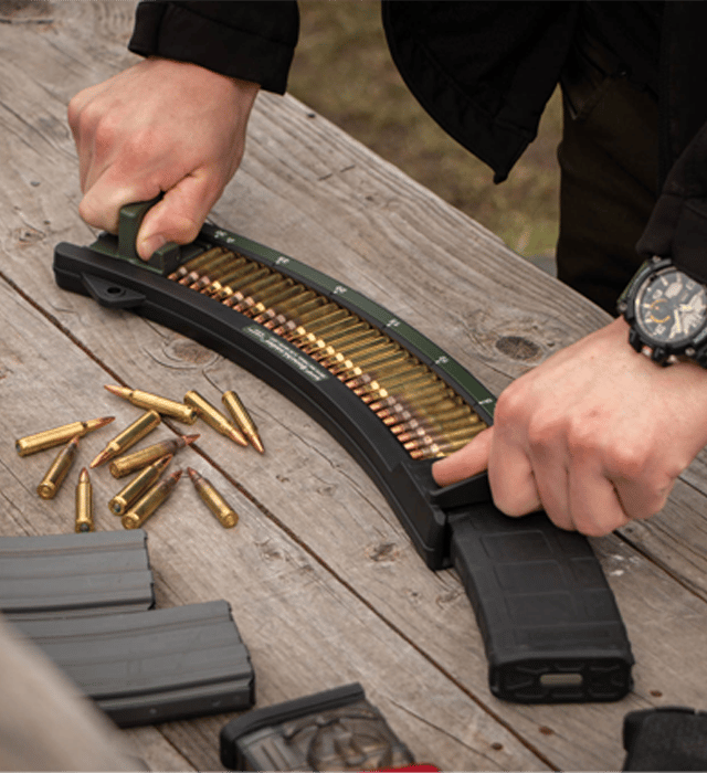 The TacticPower loader delivers effortless, high-speed performance—smoothly loading 1 to 30 loose rounds in a single stroke and enabling a full 30-round magazine reload in as little as 25 seconds.