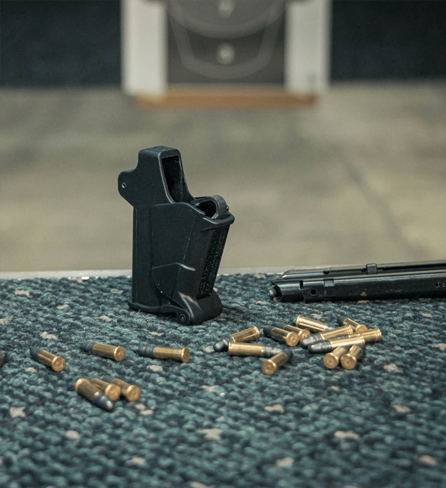 • Easy loading; the rounds drop in without fingers pushing or pressing them.